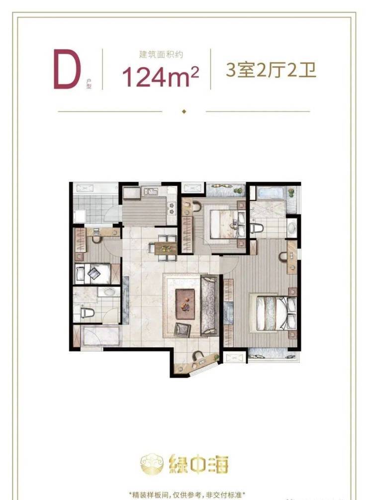 建面约124㎡3房2厅2卫
