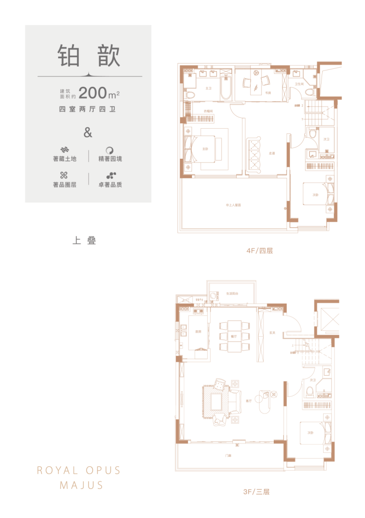 上叠:118(3室2厅3卫),150(4室2厅3卫),200(4室2厅4卫)
