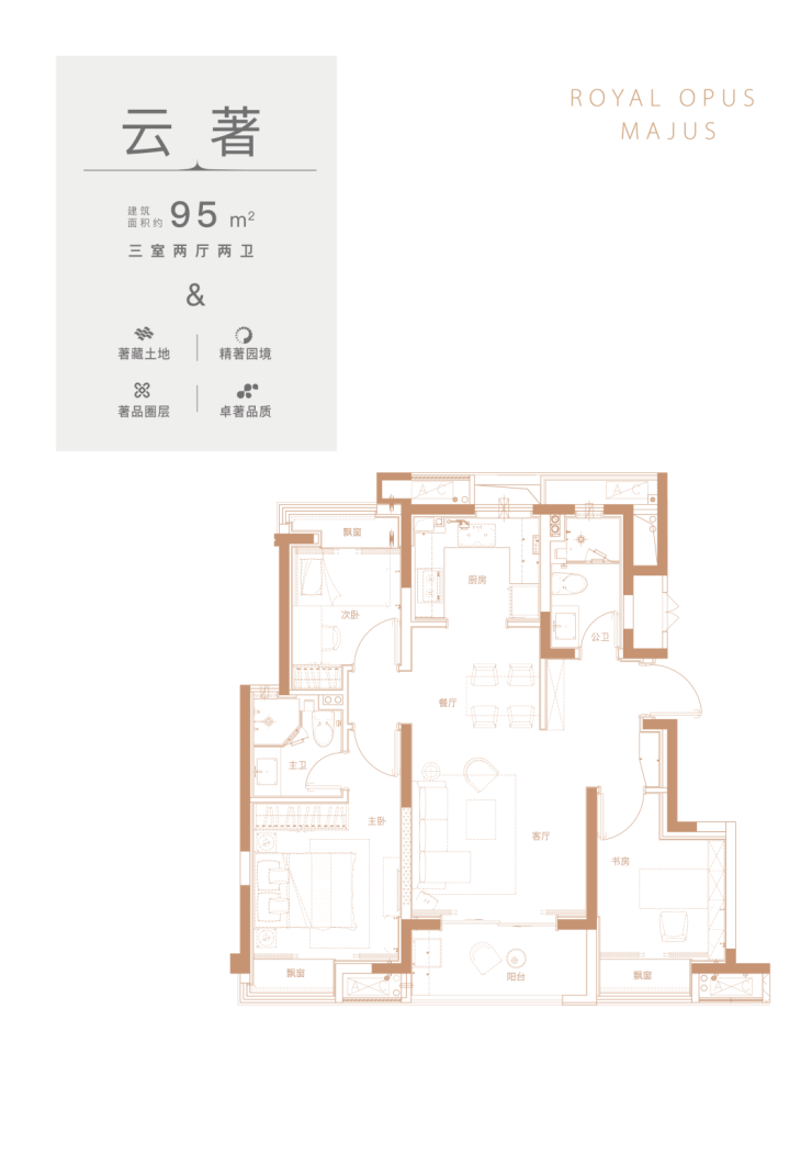 约72㎡-95㎡的墅境洋房,以城市低的姿态迎接高质的生活,以人为本的舒适精装洋房,匹配城市进阶者的高尚品味;全卧观景飘窗,夕阳与晨曦在枕间悄然停落,尽揽上层人生景致;阔绰南阳台,与阳光有约,与东方美学园林相视;