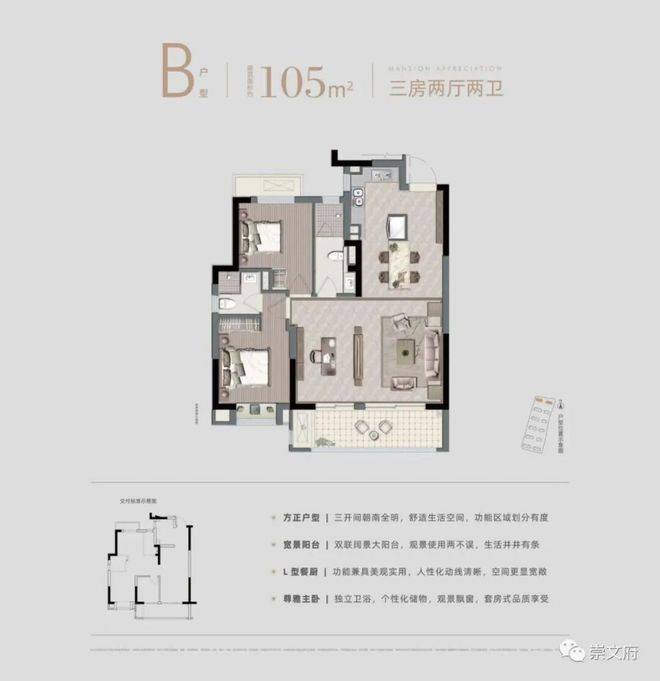 【户型面积】高层建筑面积约105㎡,洋房建筑面积约89-120㎡