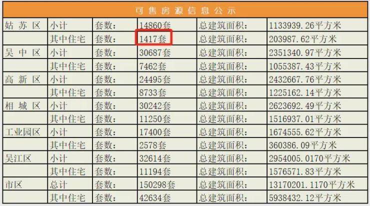 新房库存方面,据我们统计显示,截至目前,苏州新房库存一直维持在4万套以上,而姑苏区的新房库存却不到1500套,占比微乎其微,仅占3.3%。