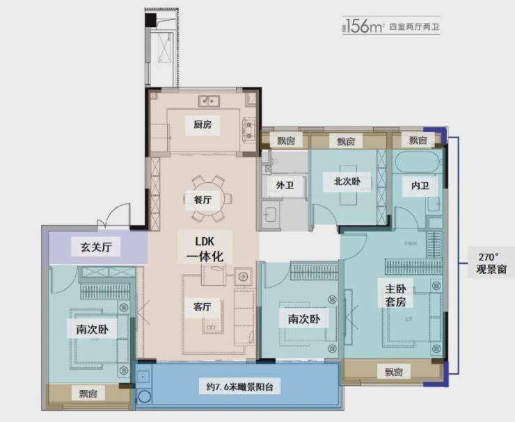 澜庭湾颠覆“好房子=高门槛”的公式,不妨来看下这个156㎡的大四房明星户型: