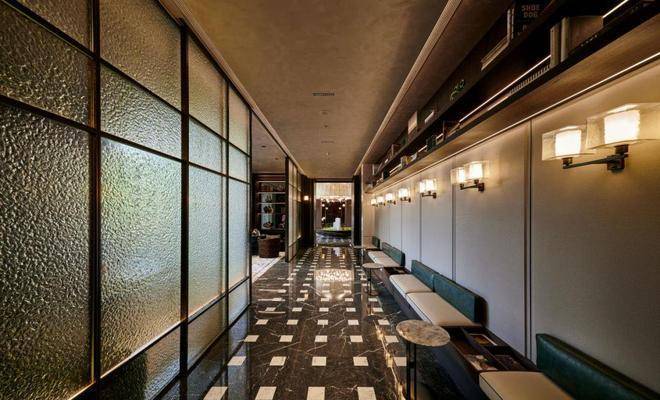 豪华酒店式门头,是整整用了一年时间才打磨出来的。香槟金吊顶,镌刻精致龙鳞祥云纹,细节处彰显高贵;通透质感的玻璃屏风与景观水系,两侧沿中轴展开,极致恢弘。