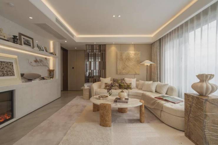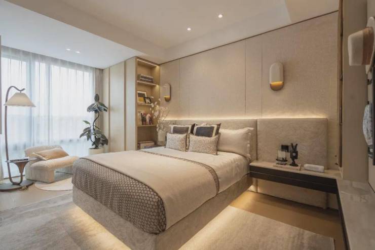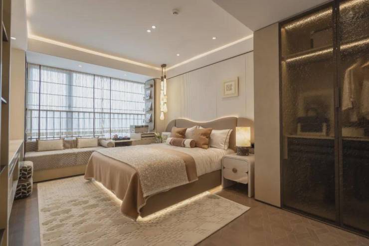 项目建筑设计邀请了九米建筑设计院量身定制,立面风格采用经典锦庐系公建化立面,四面铝板搭配大面积玻璃,封包阳台,整体精致通透,底层以浅色天然石材为主,额外做了圆弧细节,尽显优雅格调。