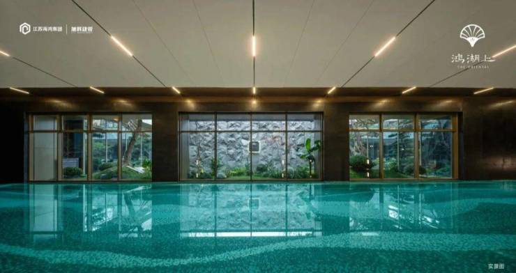 同样取意苏式园林的借景手法,比如恒温泳池就通过借景手法,透过巨幅落地玻璃,人在池中仿佛游于画中~