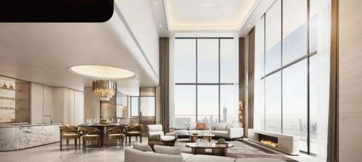 玻璃幕墙立面,最大化引入湖景与自然光。260m²户型更以“苏州唯一270°无界全景舱湖景”的姿态,将湖景作为客厅的天然背景。