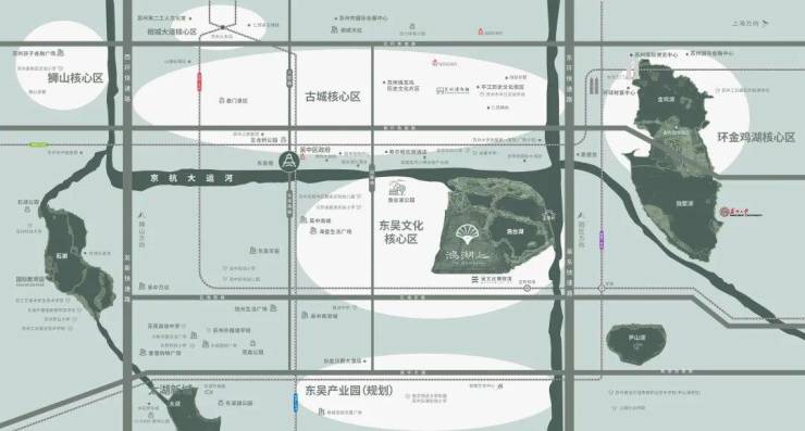 从区位来看,鸿湖上项目所处的吴中城南板块,有着苏州城市“几何中心”之称,东望园区璀璨霓虹,南揽吴江浩渺烟波,西接新区澎湃活力,北倚姑苏千年风雅。得天独厚的区位优势,让繁华与静谧在此从容相会。