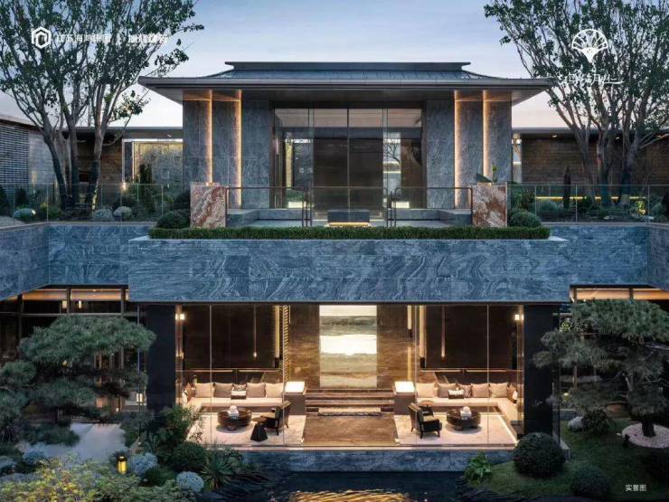 细看水幕石面,千道龙纹随水流隐现;庭院中每一处小品、灯具乃至铺装,皆为专属定制。
