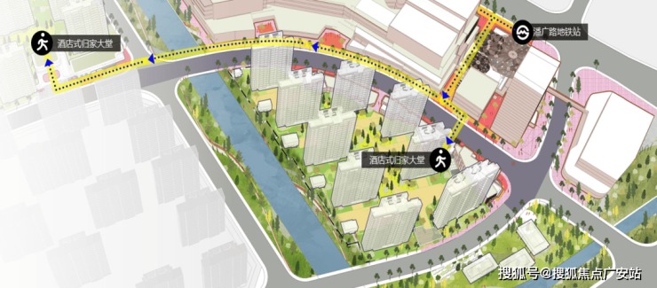 项目联通城市轨交、快速直达主干道和开放街区步道,打造三重立体路网体系,构筑组织多样性,实现快耍慢活的生活节奏,并借此串联起TOD大城里的商业、公园、街区、广场、地铁、酒店,六大场景。