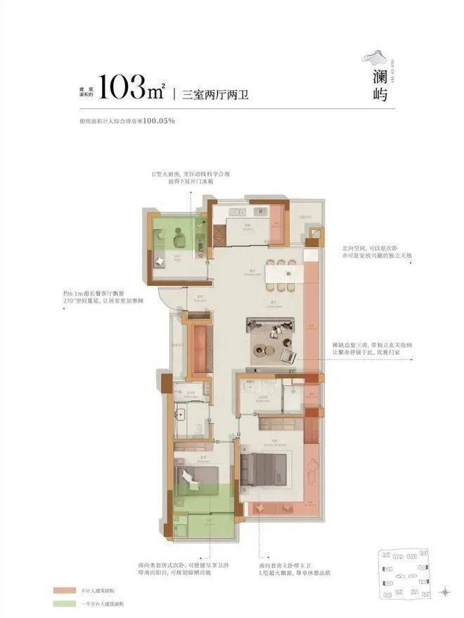 建面约103方户型: