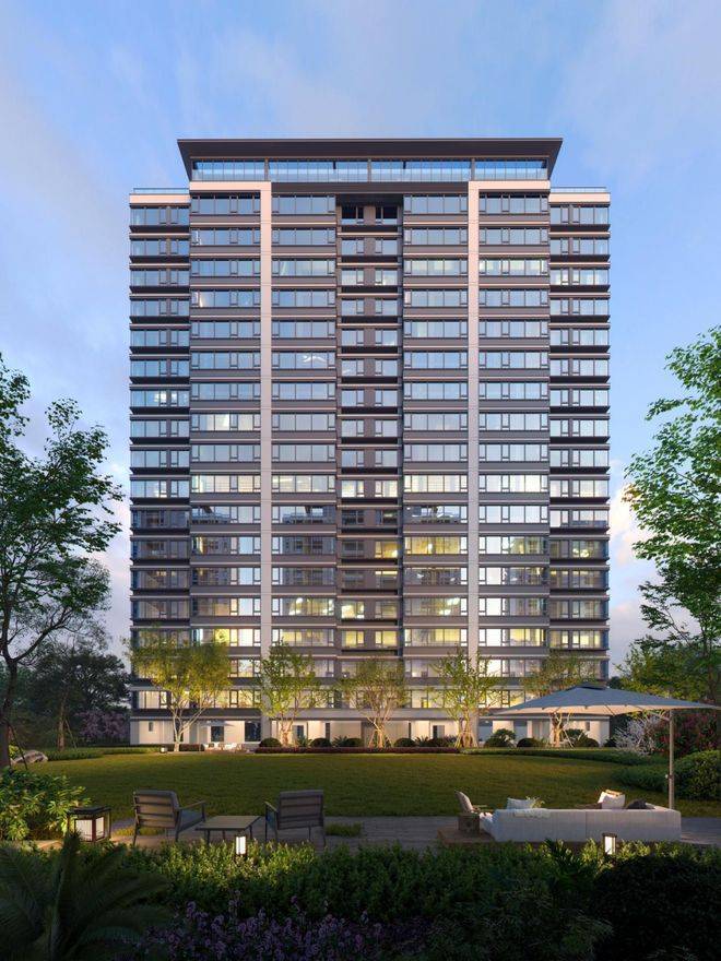 整个水木槜园,一共由7幢高层围合而成,方正大气,疏朗宁静。立面简约典雅,通透轻盈的玻璃栏板,尽显现代轻奢的风格。