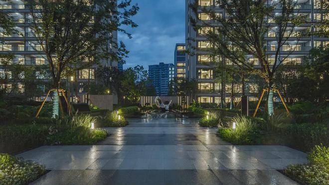 新希望锦翠栖源府园林营造上,锦翠栖源府从江南园林中汲取灵感,打造“一轴四院“的景观节点,隐静的宅间花园等,每一棵树,每一块石,讲究画境的构图,运用对景、障景、借景等造园手法,将植被按照色彩、造型、高低错落排布,使居者在移步换景间,遇见静谧的心境与拙朴的自然。