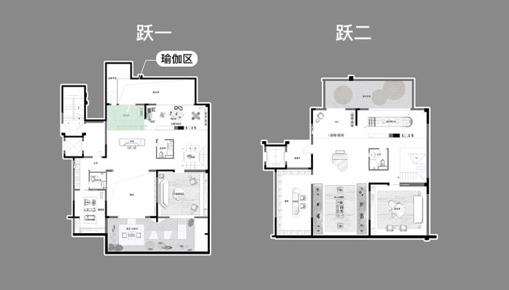 目前我们规划的有商务洽谈区、酒柜区、瑜伽室、健身房、茶室、儿童区、影音室等功能区,充分对标精英家庭的爱好品位和社交需求。后期也可根据业主需求做一些定制化处理,真正实现“可成长”的空间。
