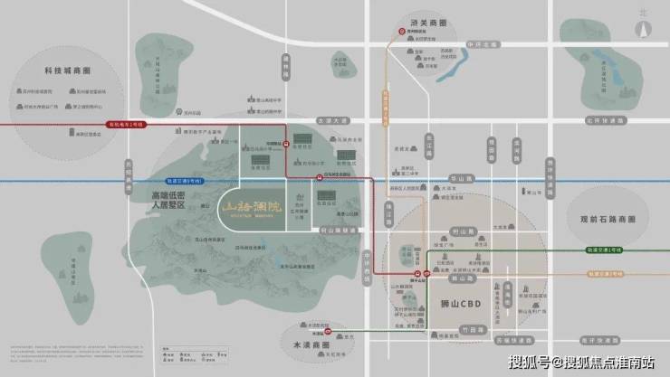项目所处板块在地理位置上处于高新区中心位置,东有狮山核心CBD西有科技城,共享两个区域优质配套。以周边山水自然风光为基础,何山隧道为纽带,连通进一步项目与狮山片区。实现自然风光 — 项目 — 都市生活链条,构建多元生活场景。