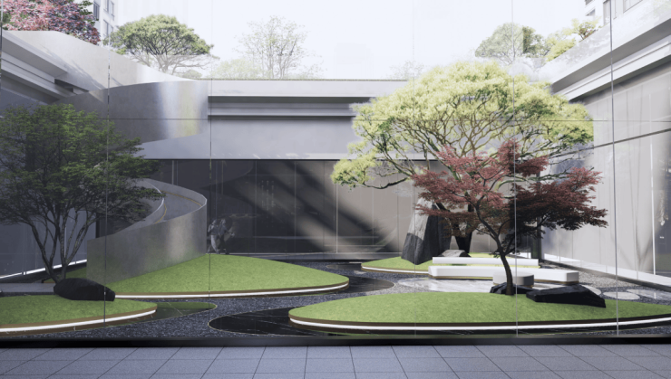 还有阳光草坪、自然迷宫、亲子乐园、森氧庭院……每一个空间,都适合友邻闲坐,谈笑风生。