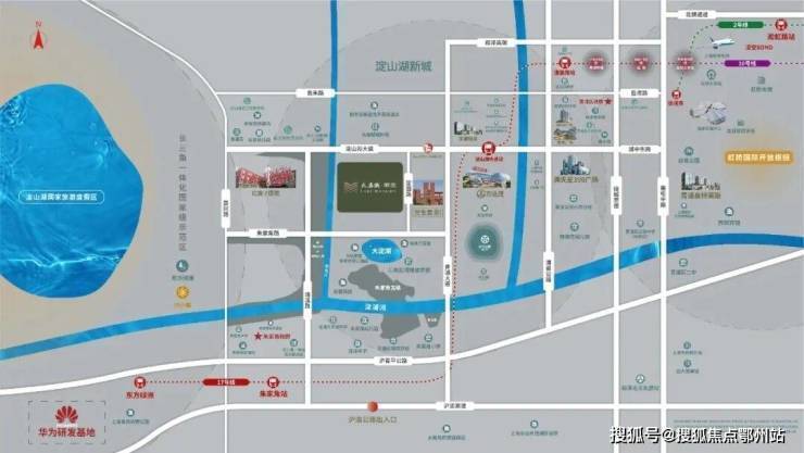 轨道交通方面:项目距离东侧的17号线淀山湖大道站约2公里,自驾3分钟左右即可到达,可无缝换乘地铁2号线、10号线。