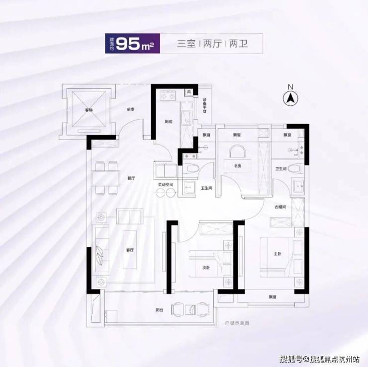 建面约95m²3房2厅2卫