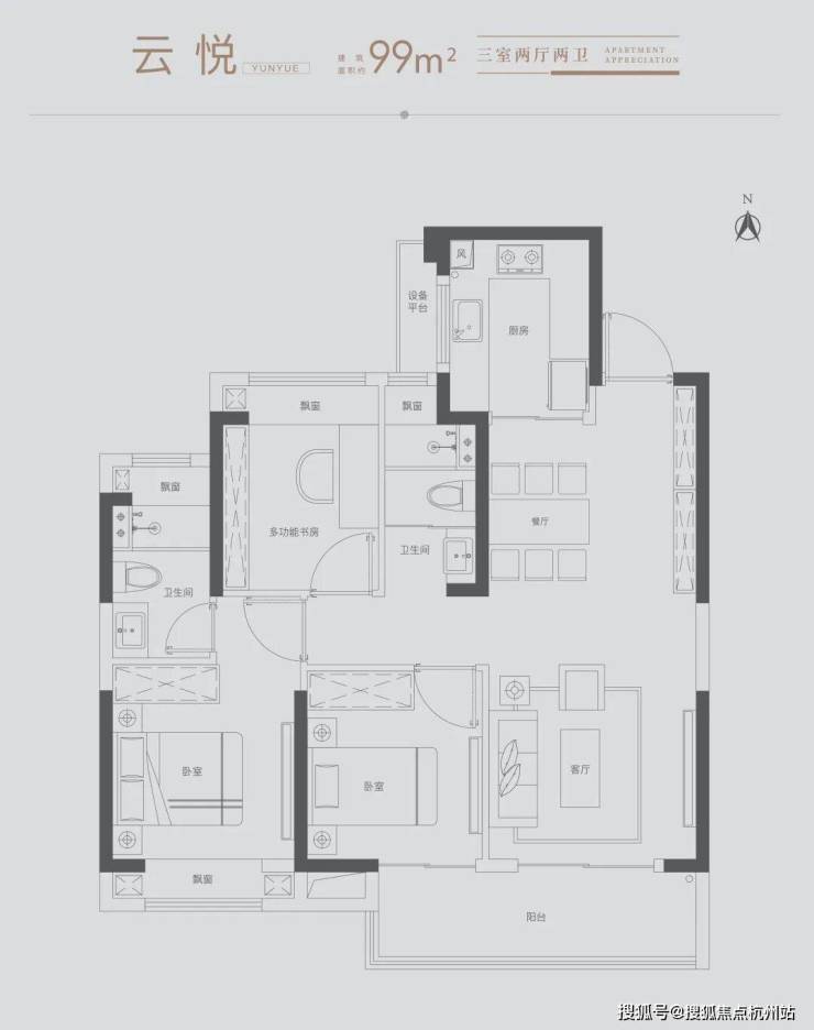 雅致三房:满足三口之家所需,北向房间可改造书房,理想生活一步到位
