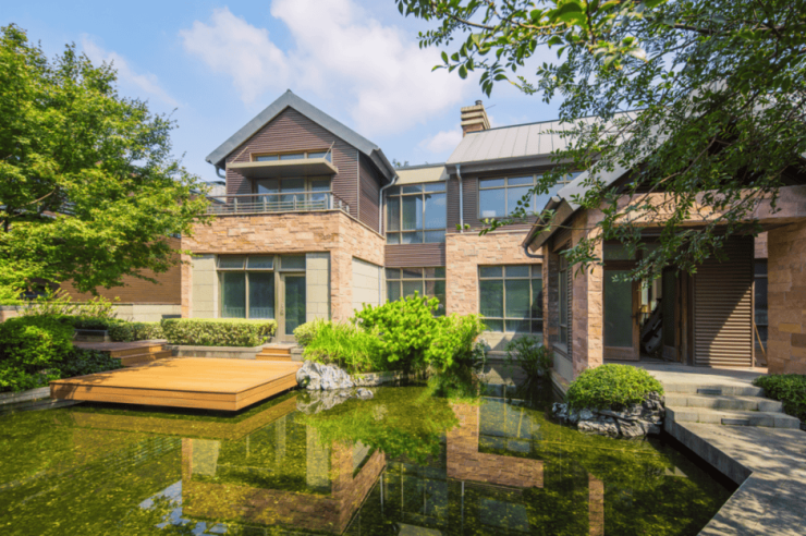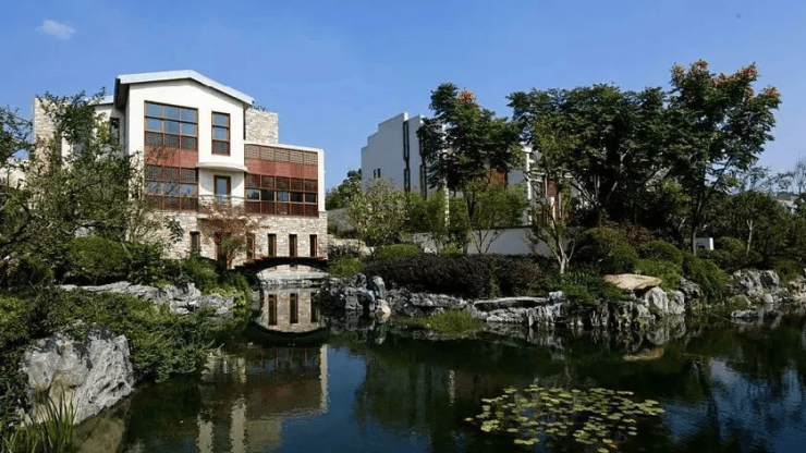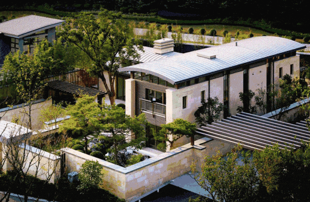 依山傍水每栋皆独创,邀请百位名家设计师、风水师,斥资数亿,暌违十年,打造了上海豪宅的标杆,成为中国外观专利别墅区。既注重风景的开发性也关注庭院生活的私密性,庭院外纳佘山绮丽风光,近融园内山水小景,产生丰富而立体的园林景观效果。