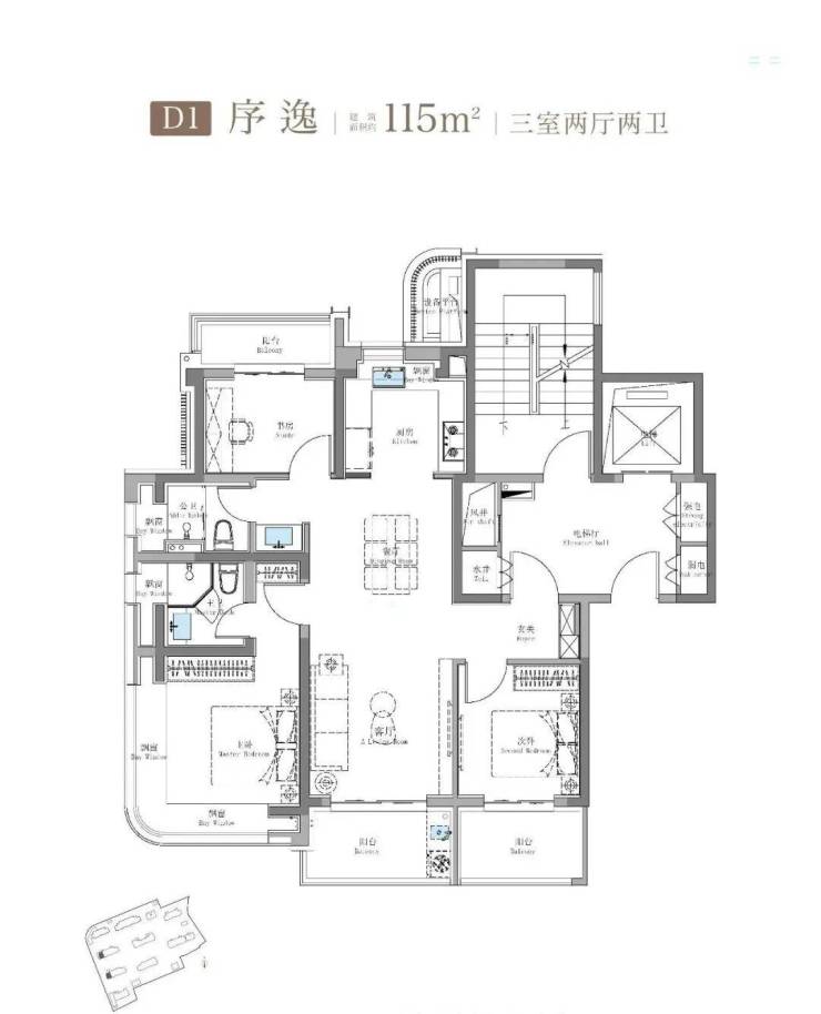 此外还有约112㎡3房、115㎡3房、143㎡4房的面积段户型,供不同需求的业主选择!