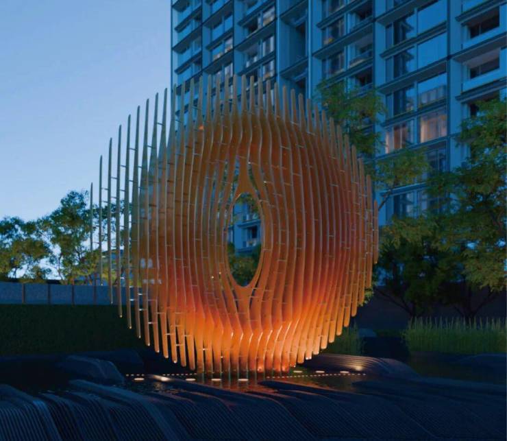 The sculpture, with its smooth metal lines, sketches the image of the dawn breaking and the surging waves, which is highly consistent with the project concept of "Tranquility and Radiance" of Poly Shibo Tianyue.