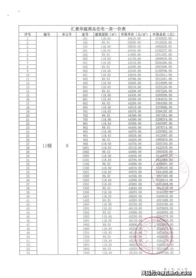 一房一价表
