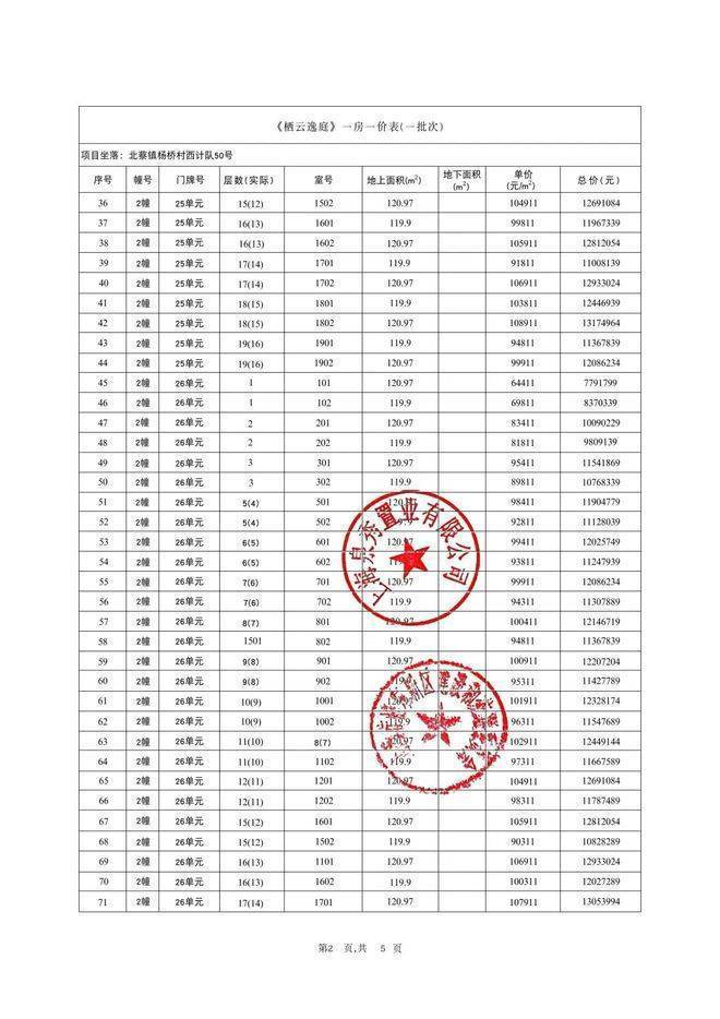 一房一价表