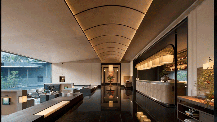 园林设计园藏天地、重构山水,在立体空间中重构叠山理水的意境,充分结合上海的在地文化,打造知停而行的庭园;
