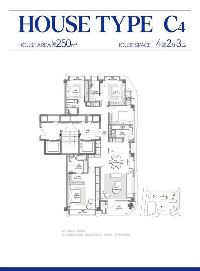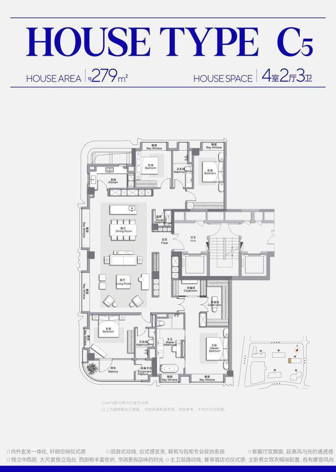 250-280㎡四房:边套270°采光,主卧双衣帽间+双台盆,带独立储藏间612。