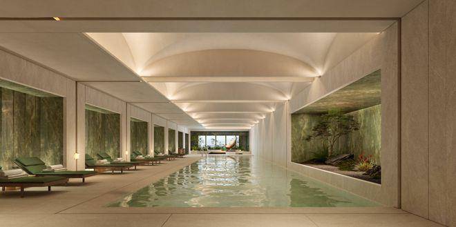 二楼通过专业餐酒吧设备、艺术光厅、女性友好健身房、上海首个度假感植物园泳池等营造艺术感会所,每一个空间都不是简单的功能间,而是化身艺术空间