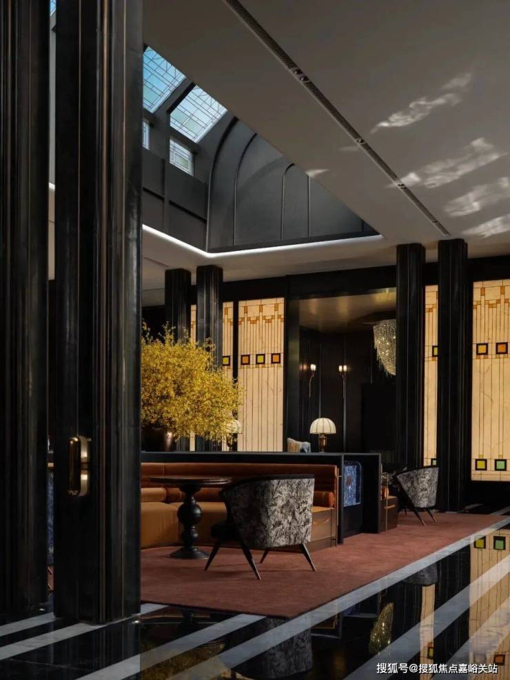 约10米挑高,以石材+玻璃穹顶打造,其整体形制,与汇丰银行大楼有着异曲同工之妙;装饰与立柱效果,又让人不禁想到上海海关大楼,颇具时代感与独特气质。