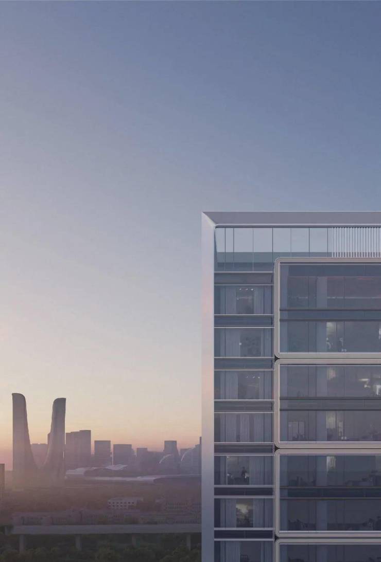 10幢标志封面,主力户型建面约330㎡高定私域,项目以立体空中场域的设计理念打造,大面积玻璃、建筑体块约45°设计,以约270°寰境一揽奥体盛景与都市风光。纯粹的大面积高定私域,为圈层人物定制一方私有的舒适恒久领地。