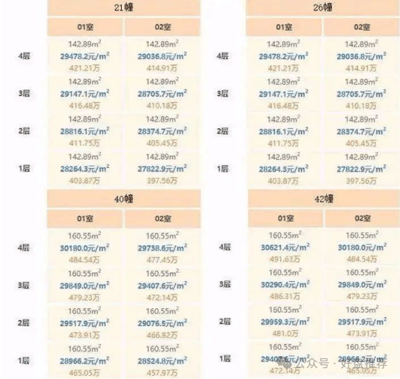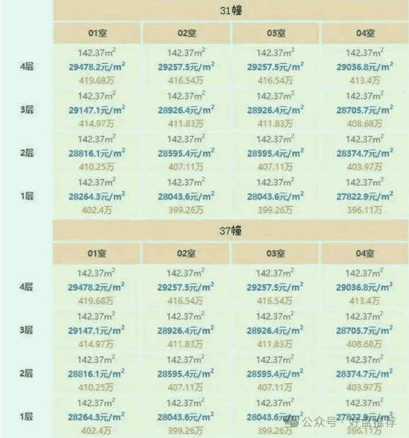 建面约143㎡四室两卫:备案均价28691元/㎡,总价394-421万元