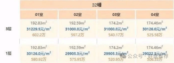 建面约192㎡四室三卫:备案均价30898元/㎡,总价576-609万元