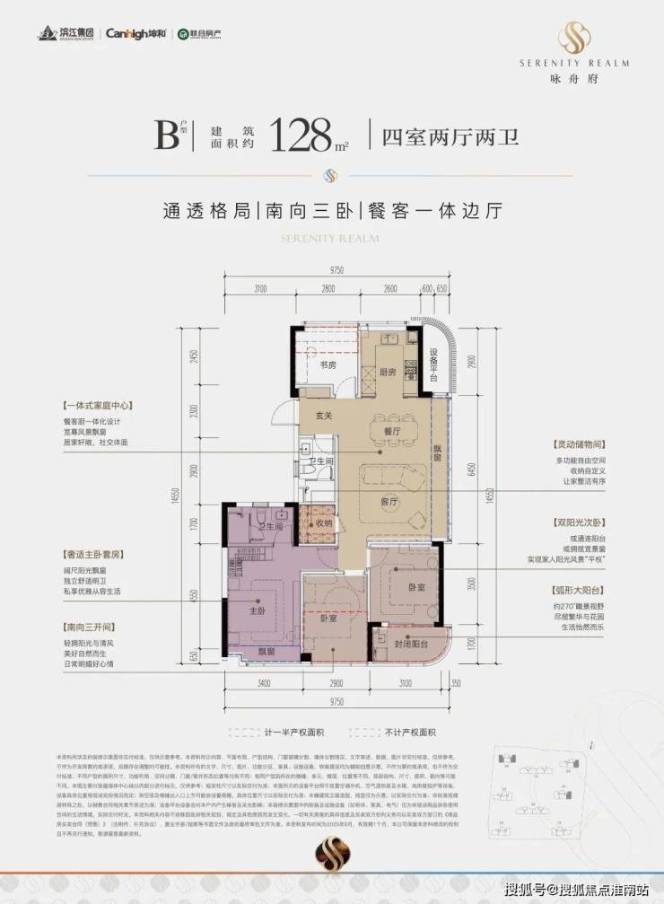 再看这款边套 建面约128㎡的四室两厅两卫户型