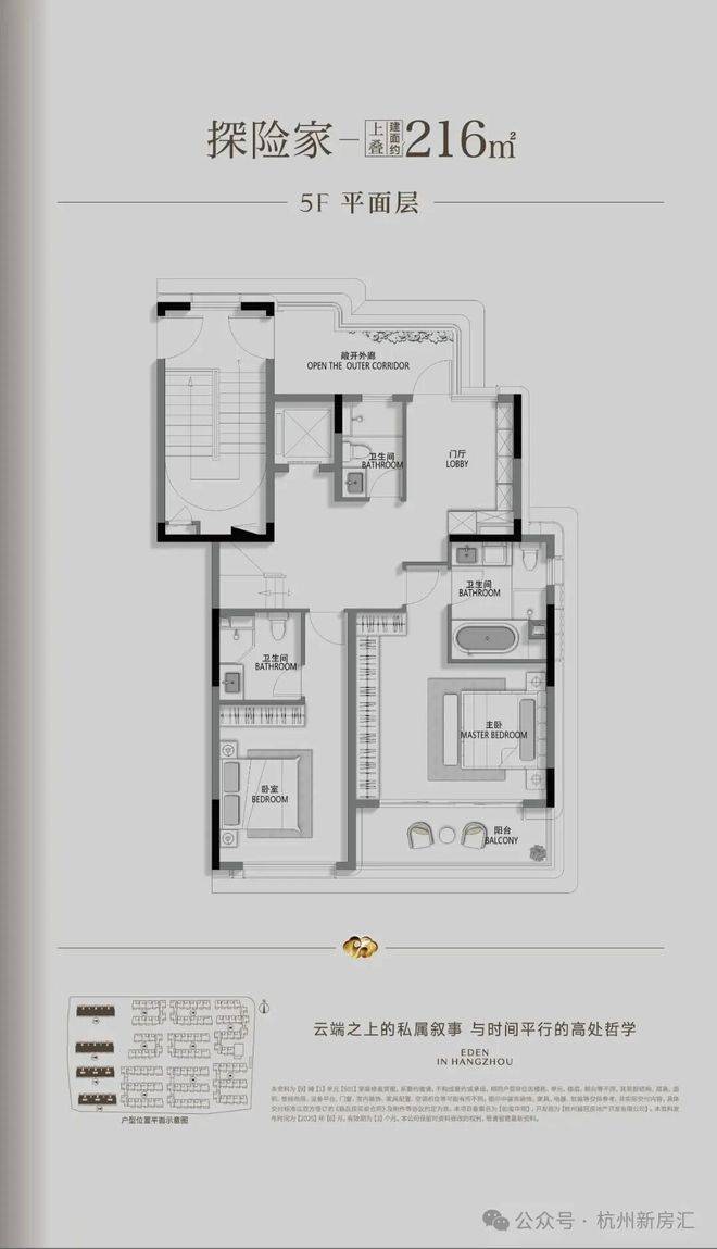 建面约215-300㎡藏品排屋,以地上三层天地院结构,礼遇独门独院。地下室挑高约7米(局部),让景观成为流动的呼吸。主卧奢配南北双露台,顶楼露台为院,时刻上演《罗马假日》的悠闲。