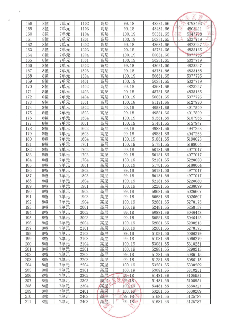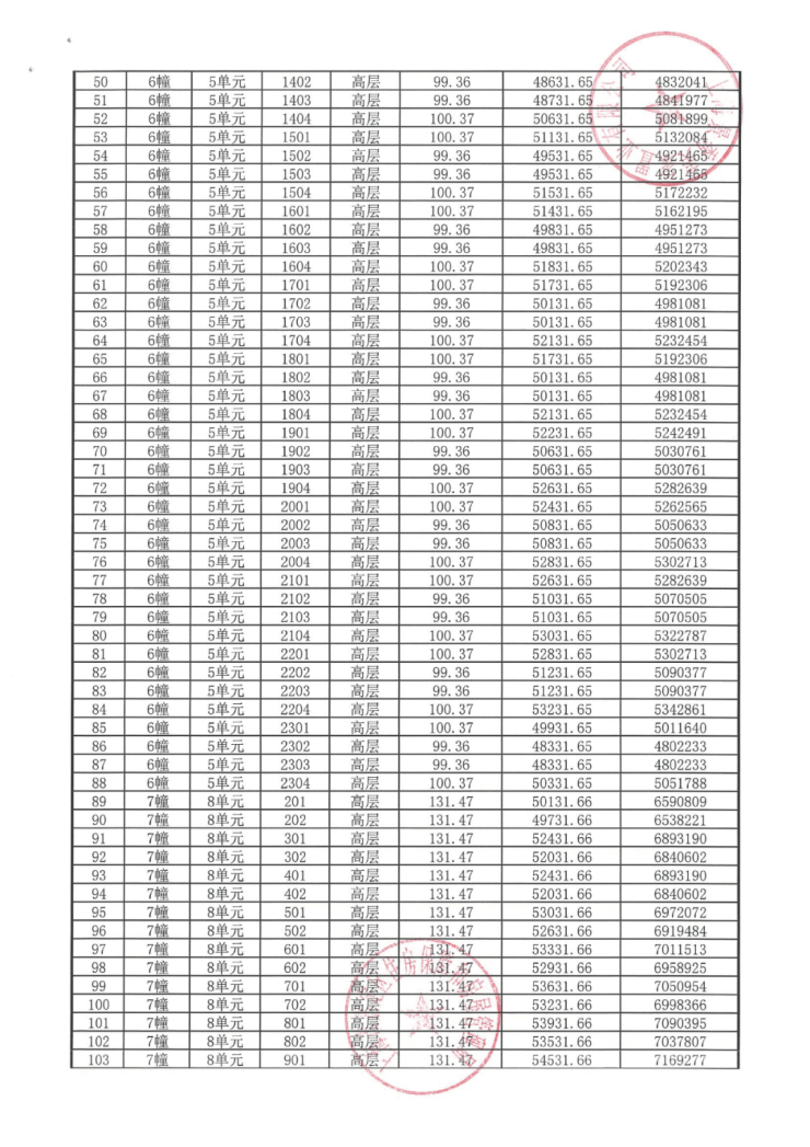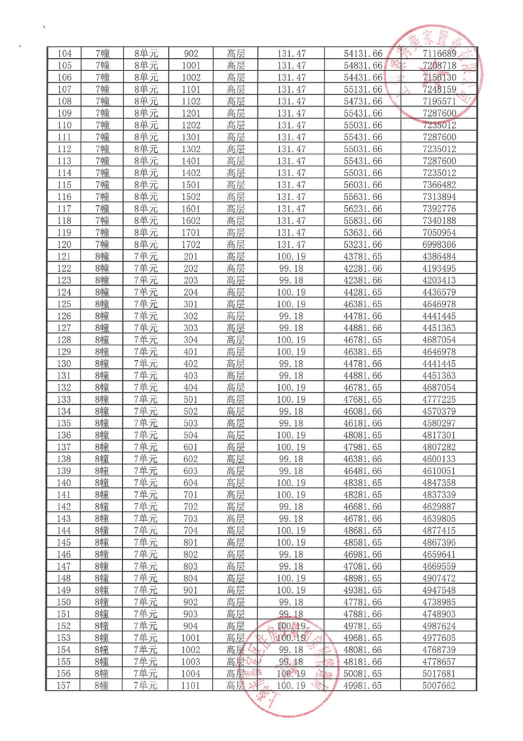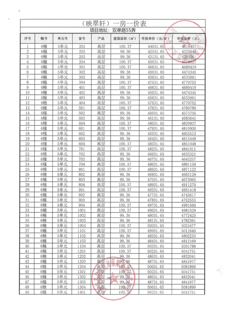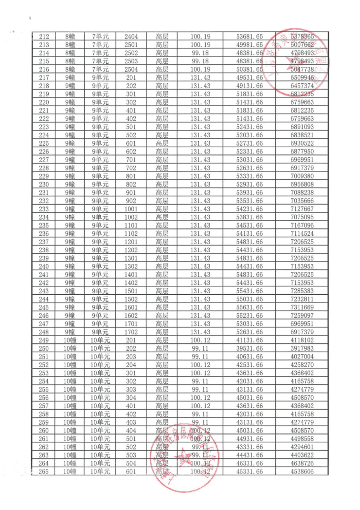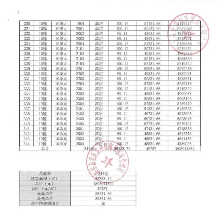 完整一房一价表如下:
