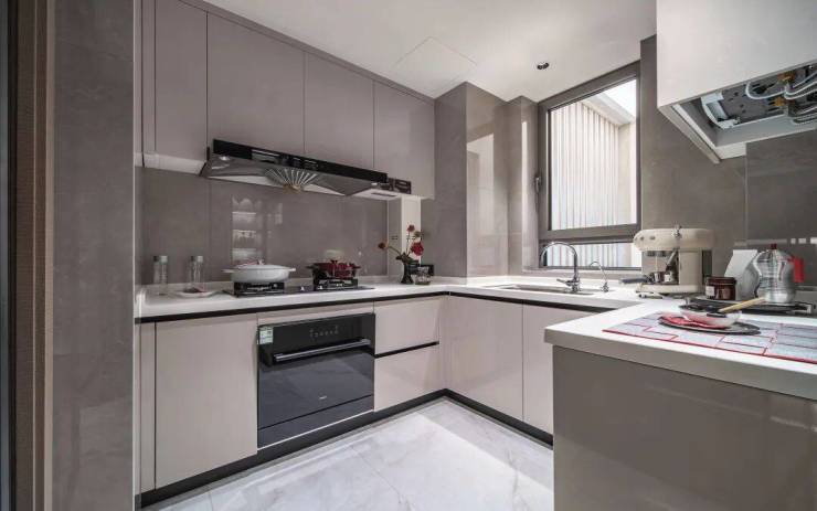 厨房空间内,配置更符合中国人烹饪习惯的老板油烟机、燃气灶、12件套洗碗机,更有摩恩的水槽和龙头、定制的组合橱柜。同时配有荣事达净水器,奥普凉霸。并贴心考虑到日后使用厨房水池反水等问题,特加了食物粉碎机。