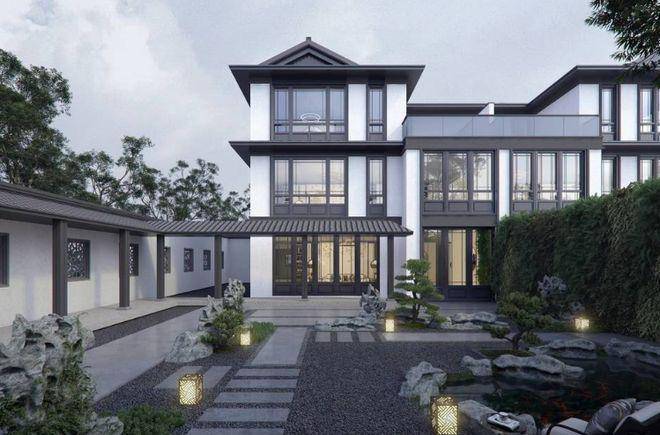 新中式院墅:200-430㎡五至七房,南向面宽达10米,赠送80-150㎡私属花园及50-100㎡星空露台,青砖影壁还原宋式建筑风骨