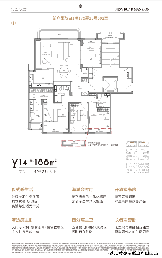 极致奢华:针对海派精英生活秩序再设计,双向私密电梯入户、家政处理间、无界会客厅,媲美大平层的尺度感,见证豪宅待客礼仪升华。
