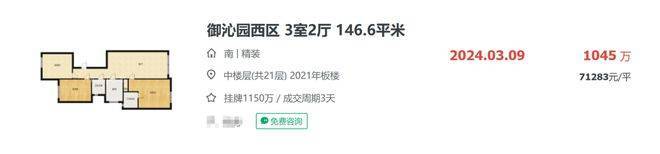 目前御沁园最新一期房源二手房在链家网上挂牌5.8-7.5万/㎡,近期的成交不多,7万+/㎡的成交,还是24年3月的案例。