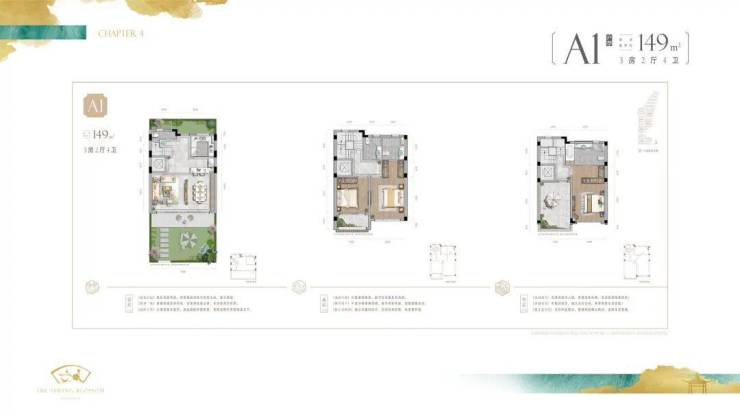 中式合院:建面约149-227㎡,总价350-550万元/套,赠送50-150㎡花园+露台,坡地布局享高差景观3。
