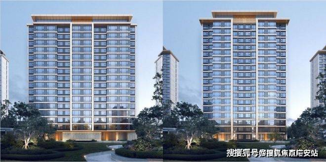 现代风格:立面利用大面积玻璃+阳台落地窗+金属型材+层间装饰提升建筑整体感和精致度,外立面大面采用浅色仿石多彩漆,浅灰色金属格栅,浅灰色玻璃,香槟色金属型材收边形成创造出建筑独有的人与自然、动静结合、丰富美观的轻盈质感,