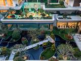 “一心”——位于小区中央的阳光草坪、核心景观会客斤;“一环”——小区中央设置环形夜光慢跑跑道;“两轴”——分为艺术文化轴和社区生活轴;“N庭”——在小区内设有多个运动休息及会客的绿化景观庭院,每个庭院的绿化设计都不相同各有特色。