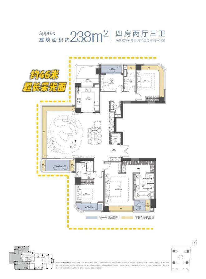 275㎡户型全屋约50米环幕视野,南向约22米采光!