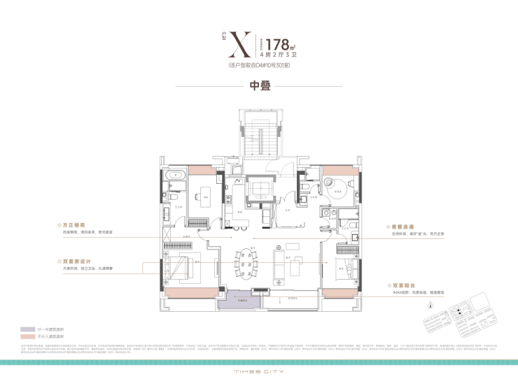 项目的中叠四开间朝南,超大IMAX的采光面,妥妥市区豪宅大平层的尺度感。