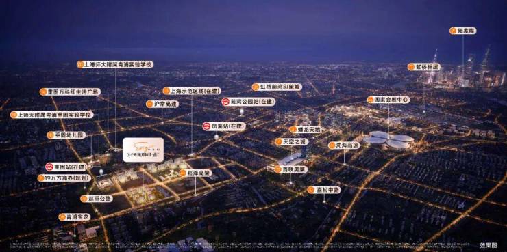 更关键的是,示范区线无缝衔接2号线、10号线、机场联络线,未来或接入地铁4号线,编织成一张真正的城市轨交网络。而保利虹桥和颂·西岸,就坐落在这张网络的关键节点上,直线距离约600米即可抵达示范区线重固站点,3站虹桥枢纽、5站华为基地、7站张江,串联起东西向科技高地,让重固与上海核心功能区建立了紧密联结,通勤出行的便捷不言而喻。