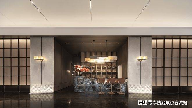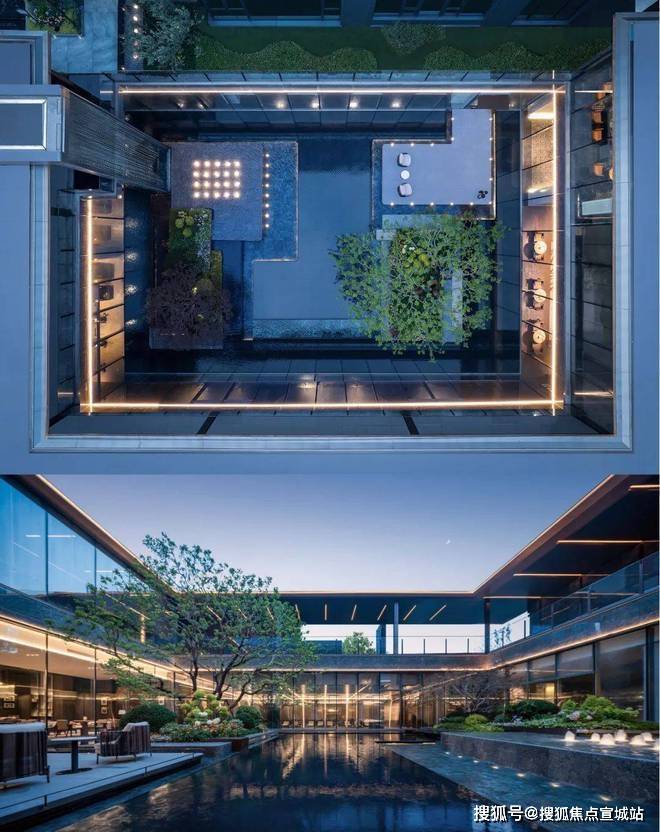 山水入画营造下沉式中央庭院,约12米飞流星瀑,臻选蓝翡翠奢石打造银河水境,百年丛生乌桕封藏四季风景,邀山水融自然,一方东方禅意画境