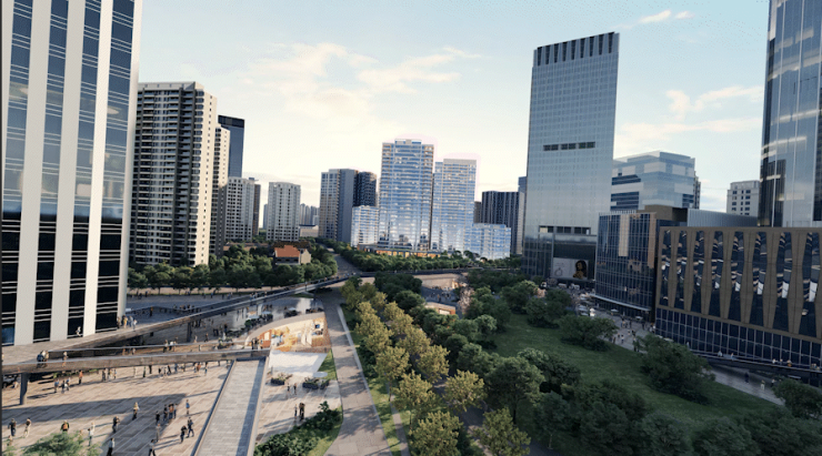 三位一体的立体城市: 规模两倍于纽约高线公园的4.5公里"双层空中连廊"正加速合围。公园、滨江、摩天集群在这里无缝衔接,你买下的不只是一栋楼,而是一整套高效流转的未来城市生态。