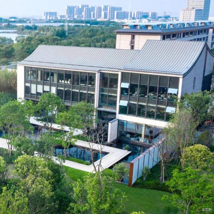 依托于盛泽湖与紫薇园,因地制宜,融合传统中式风格元素,打造低密度墅区产品。